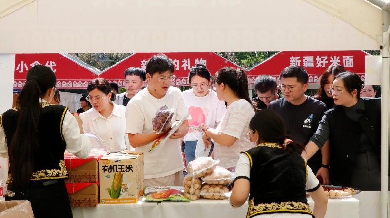 活动集中展销来自新疆各地百余类、千余种新疆特色精品,涵盖文创手工艺品、时令鲜果、经典干果、乳制品及深加工农产品等。活动现场,开展试吃、满减、满赠等促销活动,让园区工作人员亲身体验地道“疆味”。